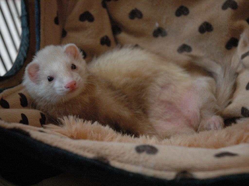 ゆうに添い寝をしていると、アミノぺッツが効いてるのか、なんだかだんだんゆうが元気になってきて、日付が変わるころにはお鼻も少しピンクになってきたので、主治医に「ゆうは元気だよ」って写メしてあげたら、主治医びっくりしてました。フェレットに添い寝できたのは今回が始めてなので、ゆうは重症なんだけど、なんだかうれしい。甘えて来るとより一層愛おしく思えてくる。このまま時間が止まればいいのにとさえ思う。でも、なんかもぞもぞしていると、粗相してるのですが、こんな状態だから許すよ、ゆうちゃん。でも、後でベットの掃除が大変になるので、ヴァンのために買っておいた大きな何度も洗って使えるトイレシーツの上にゆうのベットを置いて粗相対策しましたけどね。